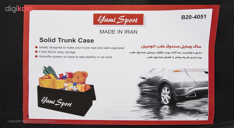 صندوق عقب خودرو مکان بسیار مناسبی برای قرار دادن وسایل است اما از آنجایی که فضای زیادی ندارد بهتر است در چیدمان آن به خوبی عمل کرد. یکی از راههای نظم بخشیدن به صندوق عقب خودرو استفاده از ساکها و کیفهای نظم دهندهی صندوق است. با استفاده از محصول فوق میتوانید این کار را به خوبی انجام داده و حتی لوازم خود را به لطف قابل حمل بودن این ساک، جابهجا کنید. این ساک را میتوانید در صورت نیاز با کمک صفحهی تقسیم کننده به دو بخش مجزا تقسیم کنید و وسایل خود را در آن قرار دهید. این محصول دارای در بوده که میتوانید در صورت نیاز آن را ببندید یا در بخش زیرین ساک قرار داده و از ساک مانند یک جعبهی روباز استفاده کنید. برای جلوگیری از تکان خوردن این محصول در صندوق، در بخش زیرین آن از چسب ولکرو استفاده شده که به موکت صندوق میچسبد. این ارگانایزر مدل «B20-4051» نام دارد و شرکت یامی اسپورت آن را تولید میکند.