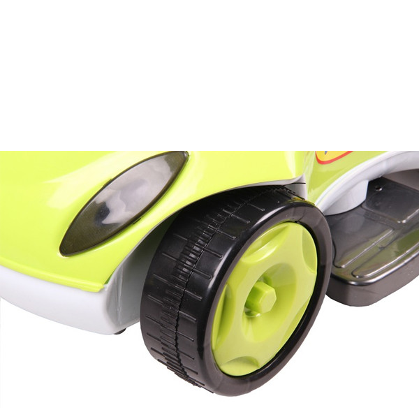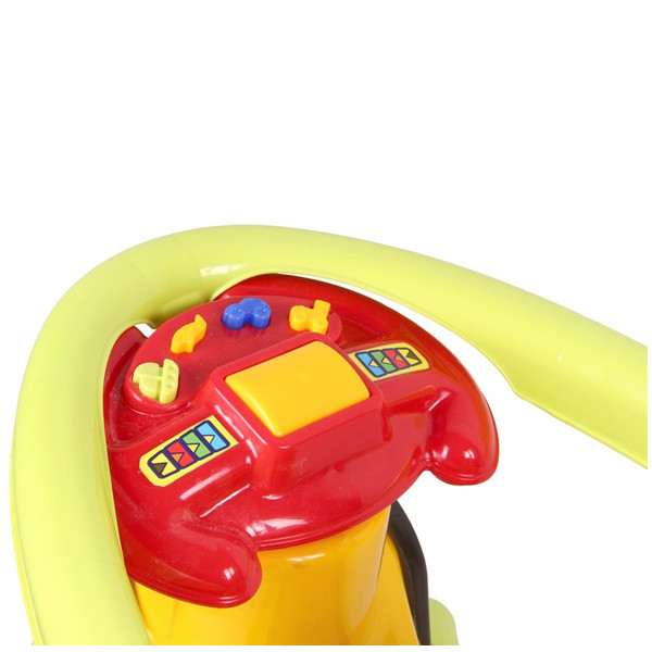 در پشت ماشین ،دسته بلند متناسب با قد والدین قرار دارد (قابل جدا شدن) که امکان هدایت توسط والدین را فراهم می کند.همچنین یک زیرپایی در قسمت زیرین ماشین وجود دارد که محل قرار گرفتن پای کودک است که به صورت چرخشی باز و بسته میگردد. فرمان این ماشین به گونه ای طراحی شده است که به راحتی از بدنه جدا شده و به صورت مجزا به اسباب بازی موزیکال تبدیل میگردد که با فشردن دکمه های آن صدای موزیک از ماشین پخش می شود تا کودک لذت و هیجان بیشتری را از بازی خود تجربه کند.وزن قابل تحمل این ماشین۲۷ کیلوگرم میباشد و برای گروه سنی ۱۰ ماه تا ۳ سال مناسب است. این ماشین توانایی حرکتی کودکان را تقویت میکنند و تحرک بدنی مفید ایجاد میکنند و قدرت حفظ تعادل را بهبود می بخشند.همچنین مزایای یک کالسکه را برای والدین به همراه دارد.چرخش ۳۶۰ درجه این محصول یکی از مزایای مهم آن محسوب میشود .