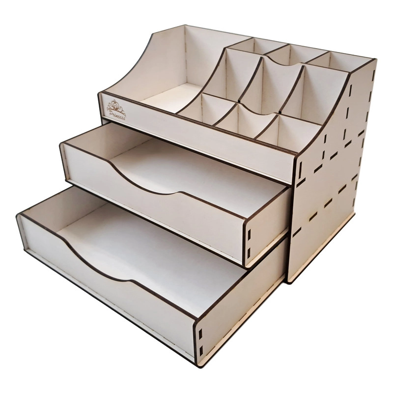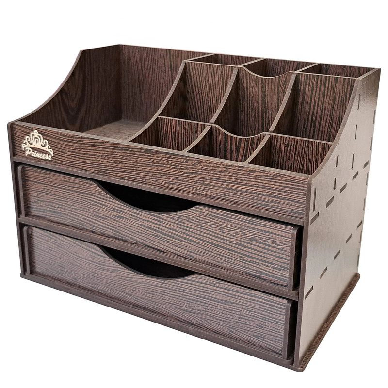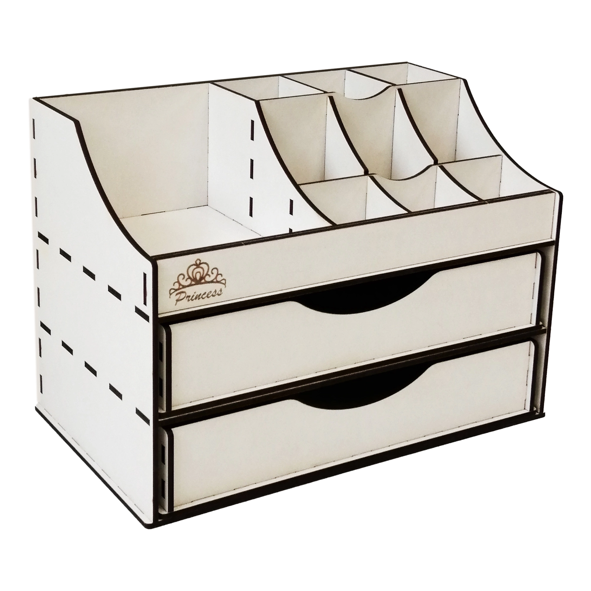 اغلب بانوان هنگام آرایش کردن با مشکل نامرتب بودن لوازم آرایشی و عدم دسترسی سریع به وسایل خود مواجهند که باعث اتلاف وقت و صلب آرامش آنها می شود. استفاده از نظم دهنده های رومیزی نقش بسزایی در مرتب بودن محیط ایفا کرده و زمان پیدا کردن وسایل و استفاده از آنها را به طرز چشم گیری کاهش میدهد. استند لوازم آرایشی مدل S-101 از سری نظم دهنده های رومیزی در سایز کوچک است که با انواع رنگ بندی برای همه سلیقه ها ارائه میگردد. جنس محصول از چوب MDF بوده و دارای دو کشو بزرگ جهت قرارگیری وسایل در قسمت پایینی و 12 محفظه جهت قرارگیری وسایل کوچک تر تعبیه شده است. این محصول برای قرارگیری انواع رژ لب، پنکیک، پاک کننده های آرایشی، انواع سایه های چشم، کرم، لوازم نگهداری از پوست و مو، مداد، عطر و ادوکلن، زیورآلات، بدلیجات و لوازم التحریر طراحی شده و قابل استفاده میباشد. شما میتوانید از این استند رومیزی در منزل، سالن های زیبایی، فروشگاه های لوازم آرایشی، داروخانه ها و تمام مکان هایی که نیازمند یک نظم دهنده لوازم آرایشی هستند استفاده کنید.