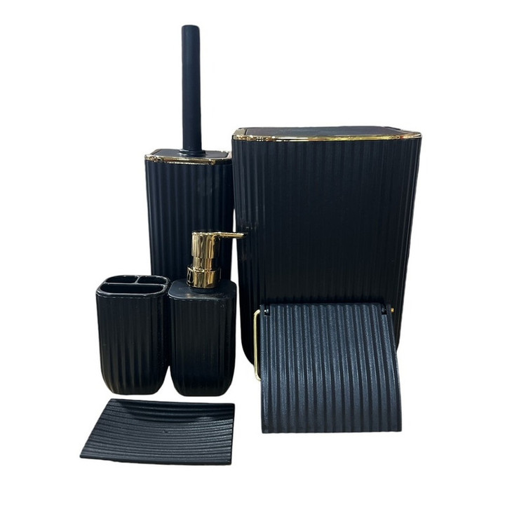 شامل 1 عدد سطل 1 عدد فرچه سرویس بهداشتی 1 عدد جا دستمال کاغذی دیواری 1 عدد جا صابون 1 عدد جا مایع و یک عدد جای خمیردندان و مسواک