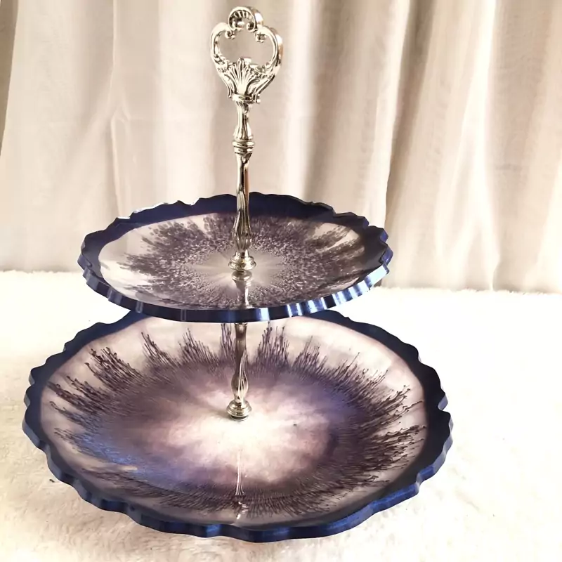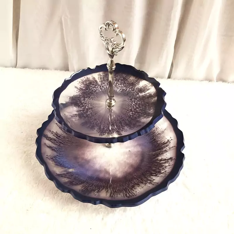 ظرف دست ساز شیرینی خوری دو طبقه رزینی نشکن