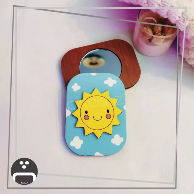 آینه جیبی طرح خورشید پیکسل ساز - جنس چوبی و نقاشی شده - ضدآب - ابعاد شش و نیم در نُه سانت