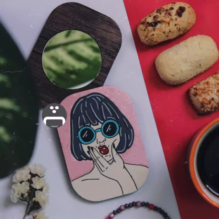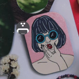 آینه جیبی طرح دختر عینکی پیکسل ساز/جنس چوبی و نقاشی شده/مناسب برای هدیه دادن و استفاده ی روزانه