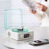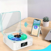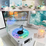 اسپیکر گرامافونی دریایی مدل KW03 یک گجت و چراغ خواب جذاب بوده که طراحی آن از گرامافون گرفته شده است. صفحه گرد این چراغ خواب مدل امواج دریا بوده و با نورپردازی خاص خود زیبایی بصری خاصی به آن بخشیده است.