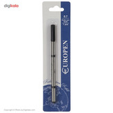 اینکه جوهر رواننویس محبوبتان تمام شود اتفاق غمانگیزی است. راه حل این مشکل استفاده از جوهرهای یدکی مثل «یوروپن» (Europen) است. این جوهر به رواننویس موردعلاقهی شما جان دوبارهای میدهد و بهاینترتیب شما میتوانید باز هم از نوشتن با آن لذت ببرید. نوک فلزی این محصول بسیار بادوام و مقاوم است و در اثر وارد شدن فشار آسیبی نمیبیند. این نوک قادر است خطی به ضخامت 0.7 میلیمتر ترسیم کند. این محصول در دو رنگ پرکاربرد مشکی و آبی عرضه شده و برای قرار دادنش فقط باید رواننویس را باز کرده و این جوهر را جایگزین جوهر قدیمی کنید. با همین کار ساده شما یک بار دیگر هم لذت نوشتن با رواننویس محبوبتان را خواهید چشید.