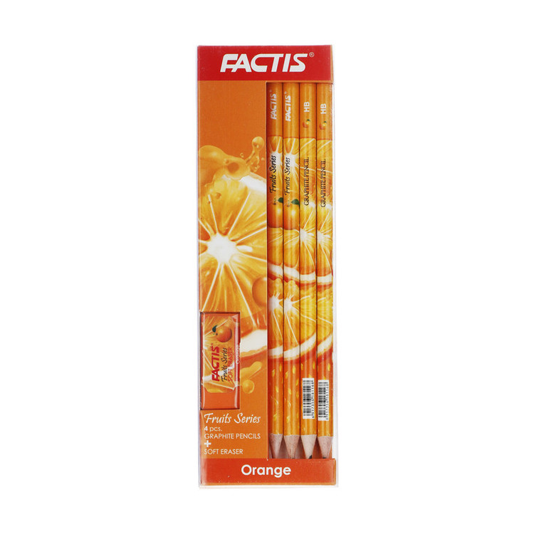 مداد فکتیس مدل Orange بسته 4 عددی به همراه پاک کن