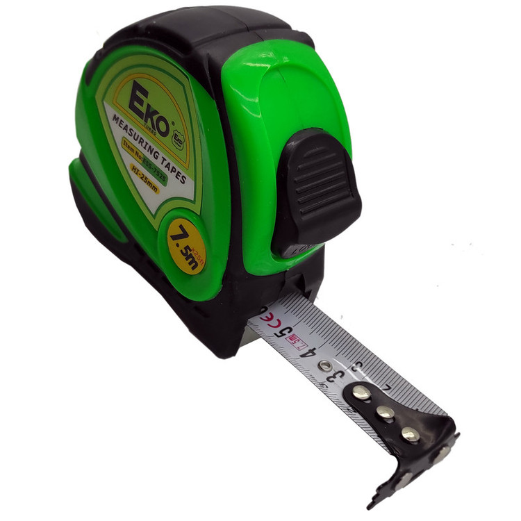 بدنه ضد ضربه و محکم از جنس ABS دارای روکش لاستیکی ضربه گیر تیغه سفید , براق با مقیاس متریک قلاب آهن ربایی قوی و 3 پرچ دارای بست کمر بندی دارای صفر اتوماتیک