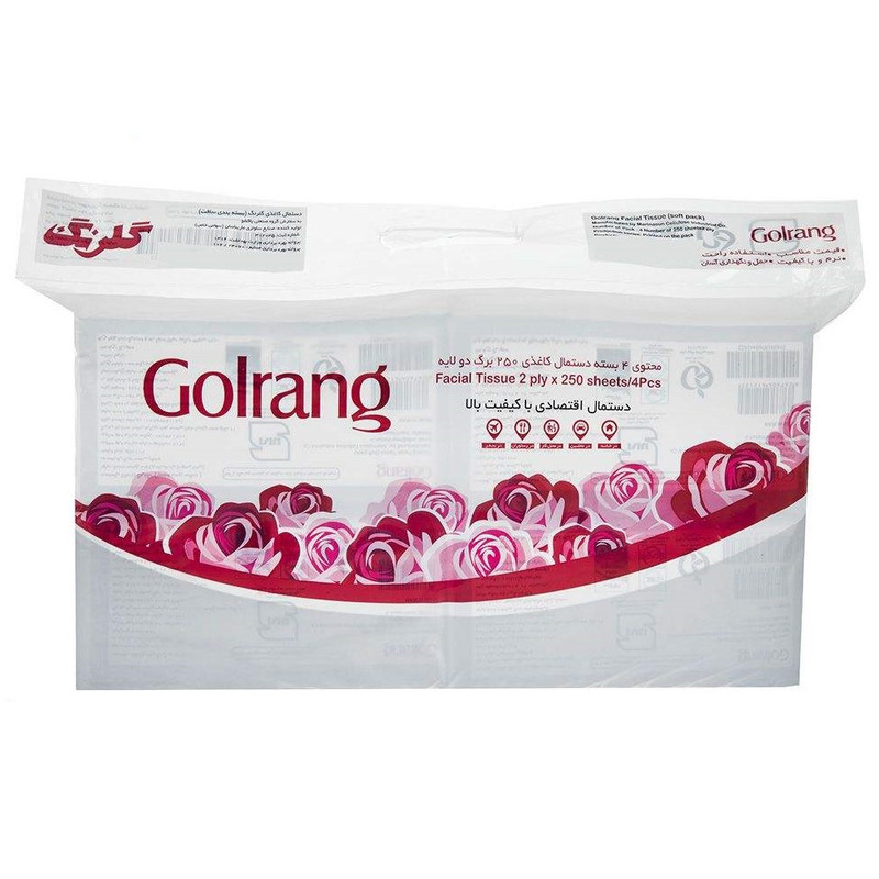 دستمالکاغذی نایلونی گلرنگ یکی از پرکاربردترین انواع دستمالکاغذی است که در محل کار، رستورانها، خانه، ماشین و ... قابل استفاده است . این دستمال نرم و سفید بوده و 250 برگ دولایه است. این دستمالکاغذی شرایط بهداشتی با مواد اولیه کاملاً مرغوب تولیدشده است. استفاده از این دستمال بهصرفه است و با خرید آن برای خانه، ادارات، رستورانها، مدارس و ... مناسب خواهد بود. بهتر است بدانید با استفاده از این نوع دستمال سبب افزایش بهداشت و جلوگیری از انتشار انواع بیماریهای واگیردار خواهید شد. تعبیه شدن جعبه پلاستیکی برای دستمالکاغذی به شما کمک میکند تا از آنها در باکس های شیک، بدون مزاحمت استفاده کنید. توجه داشته باشید استفاده از دستمالکاغذیهای غیراستاندارد و فله ای ممکن است برای شما حساسیت ایجاد کند و دچار مشکلات زیادی شوید. پلاستیکی بودن بستهبندی دستمالکاغذی در مصرف کاغذ و مقوا در کشور صرفهجویی میکند و البته در نهایت دستمالی باقیمت مناسبتری نیز به دست شما مصرفکنندگان خواهد رسید.