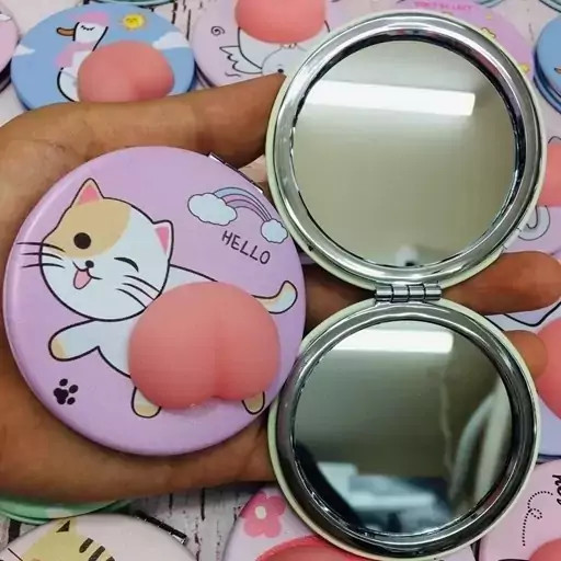 آینه اسکویشی نرمالو دمبه ای خرگوشی خرسی گربه سگ فانتزی کیوت دخترانه در دوحالت ساده و ذره بینی