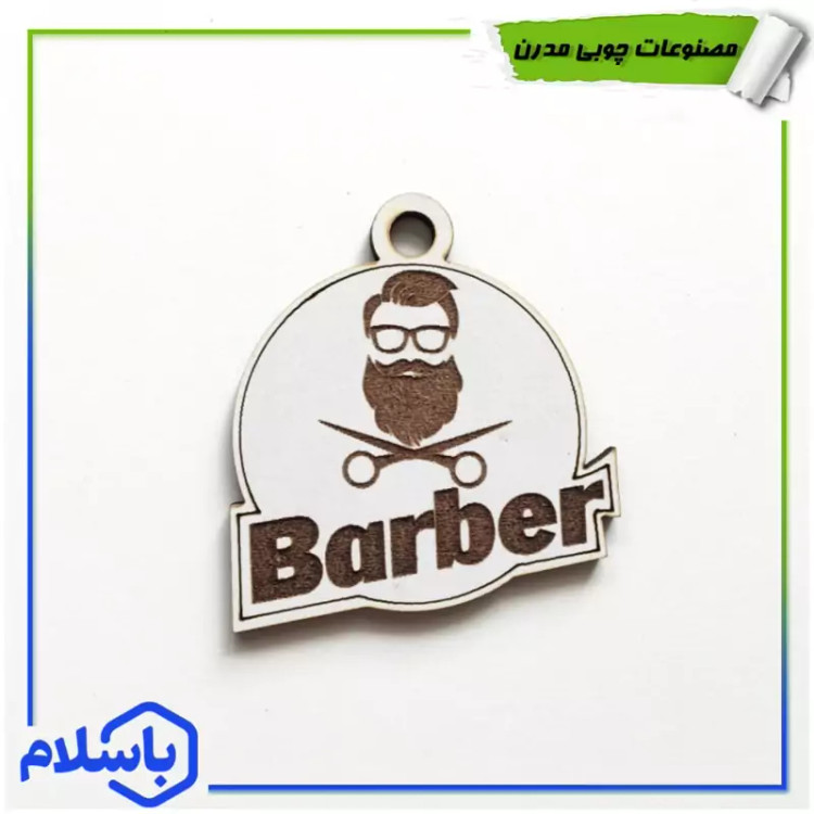 سر کلیدی چوبی طرح آرایشگاه مردانه5 با حک نوشته در رنگبندی