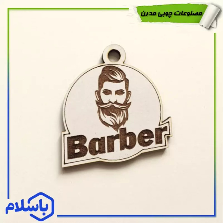 سر کلیدی چوبی طرح آرایشگاه مردانه با حک نوشته در رنگبندی