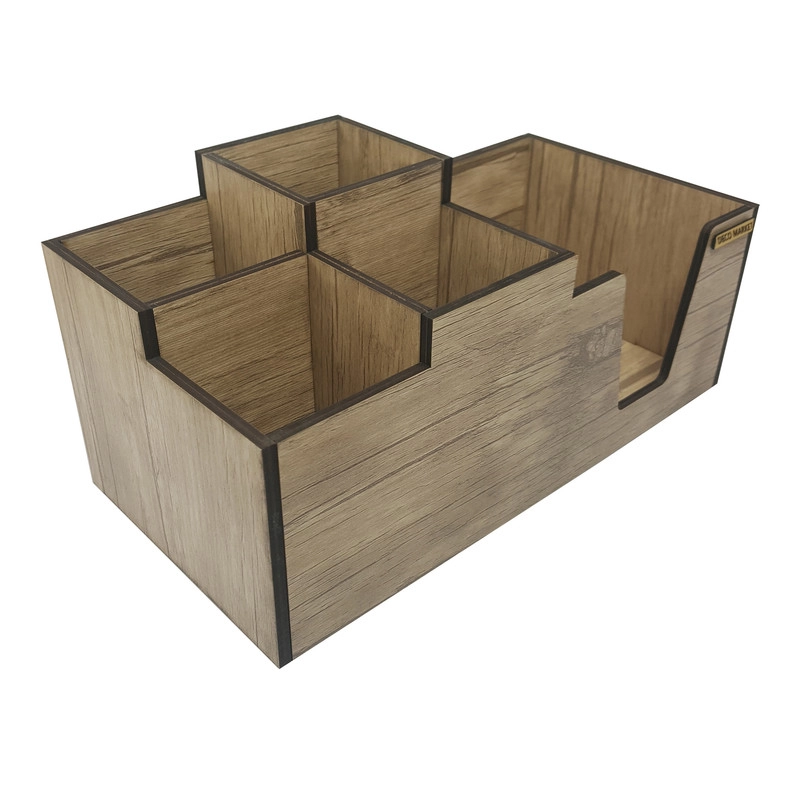 جا قاشقی و نگهدارنده دستمال سفره دکو مارکت ساخته شده از چوب ام دی اف بصورت 2 لایه برای استحکام بیشتر محصول میباشد. محصول مناسبی برای قرار دادن قاشق، چنگال، چاقو، نمک و فلفل، دستمال سفره به صورت مجزا از هم میباشد.