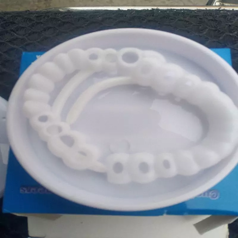 پیشنهاد ما به شما عزیزان : لمینت پودری ترواسمایل +هدیه نوار چسب سفید کننده دندان از نظر کیفیت و ماده اصلی خیلی عالی می باشد ... درخرید خود دقت نمایید وزن خالص تقرببا 20گرم در داخل بسته لمینت متحرک دندان دو قالب پلاستیکی برای فک بالا و فک پایین موجود است همچنین دو عدد ماده مخصوص ساخت لمینت نیز در بسته قرار داده شده است فرض کنیم برای فک بالا می خواهیم لمینت درست کنیم قالب ویژه فک بالا را که از نظر اندازه نیز کوچک است در دسترس قرار می دهیم سپس یکی از مواد مخصوص را در داخل لیوان محتوی آب جوش قرار می دهیم در عرض یک دقیقه ماده مخصوص حلت ژله ای بی رنگی به خود می گیرد آنرا از داخل آب جوش برداشته و به صورت همگن و یکنواخت داخل قالب فک بالا پخش می کنیم و قالب را روی فک قرار می دهیم در عرض 2 دقیقه احساس خواهید کرد که ماده مخصوص لمینت سازی حالت سفتی به خود گرفته است اکنون قالب را از روی فک برداشته و ماده مخصوص را که اکنون به شکل لمینت آماده و اندازه برای فک بالایتان درآمده را از قالب جدا کنید لمینت فک بالای شما آماده است کاملا اندازه فک شما. حالا اگر از نتیجه راضی نبودید می توانید دوباره ماده لمینت سازی را داخل آب جوش قرار داده و این مراحل را دوباره انجام دهید و این عمل را می توانید بارها و بارها انجام دهید حال این مراحل را برای فک پایین نیز انجام دهید بعلت رعایت اصول بهداشتی امکان استرداد این کالا وجود ندارد پیشنهاد ما به شما عزیزان : لمینت پودری ترواسمایل +هدیه نوار چسب سفید کننده دندان از نظر کیفیت و ماده اصلی خیلی عالی می باشد ... درخرید خود دقت نمایید