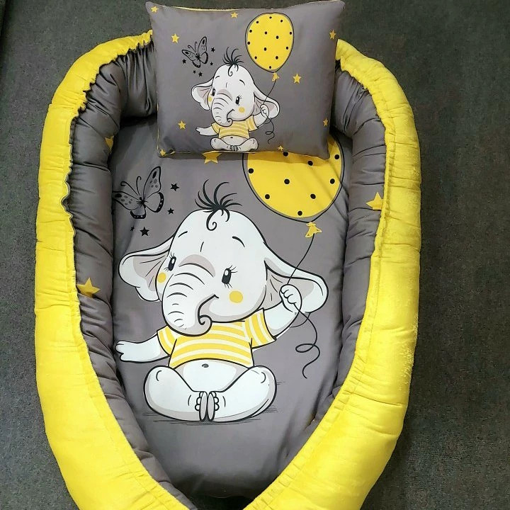 تشک گارددار نوزاد سایز دو دارای بند و بالشت جنس مخمل کالیفرنیا و حبابی
