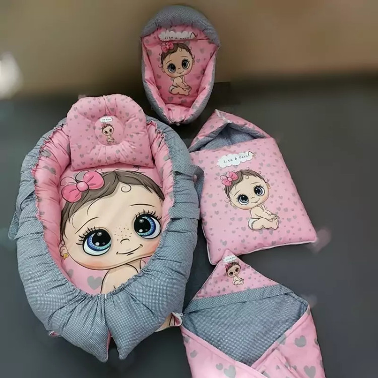تشک گارددار سایز دو بهمراه قنداق فرنگی و آغوشی سوئیسی و پتو کلاهدار و دورپیچ نوزادی اکسسوری هیوادگالری