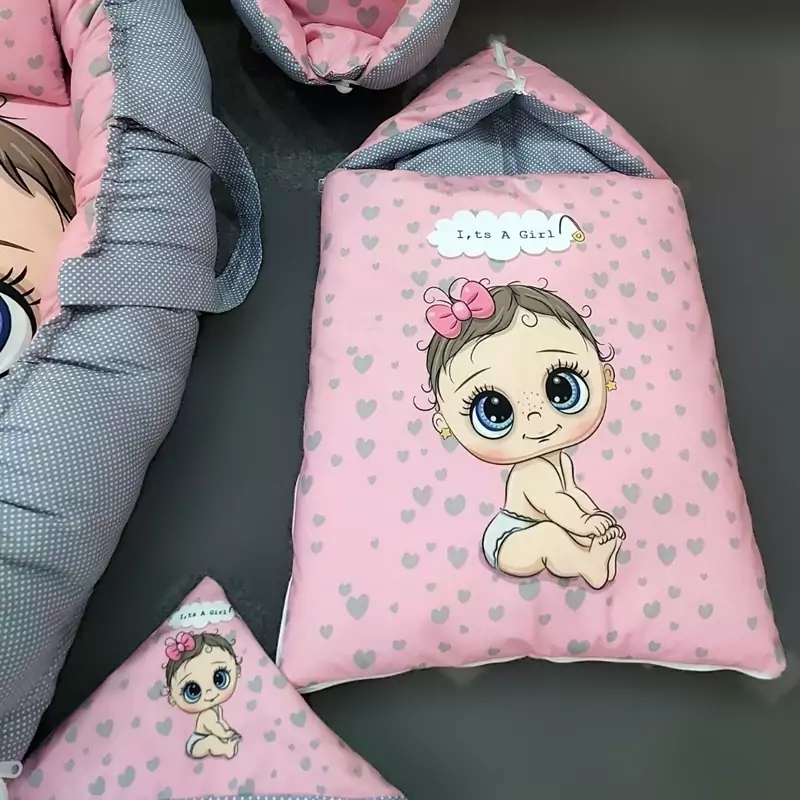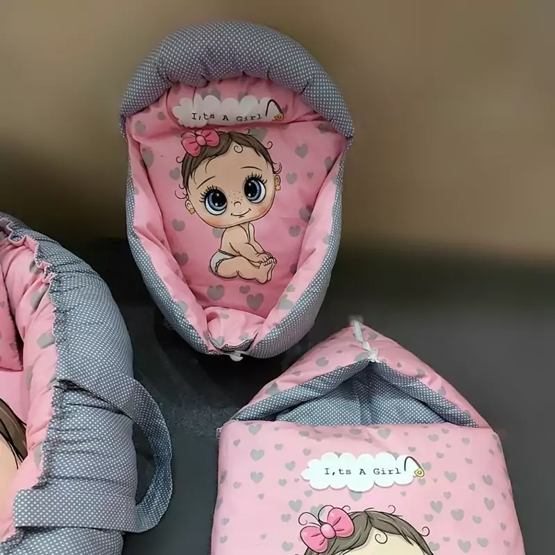 تشک گارددار سایز دو بهمراه قنداق فرنگی و آغوشی سوئیسی و پتو کلاهدار و دورپیچ نوزادی اکسسوری هیوادگالری