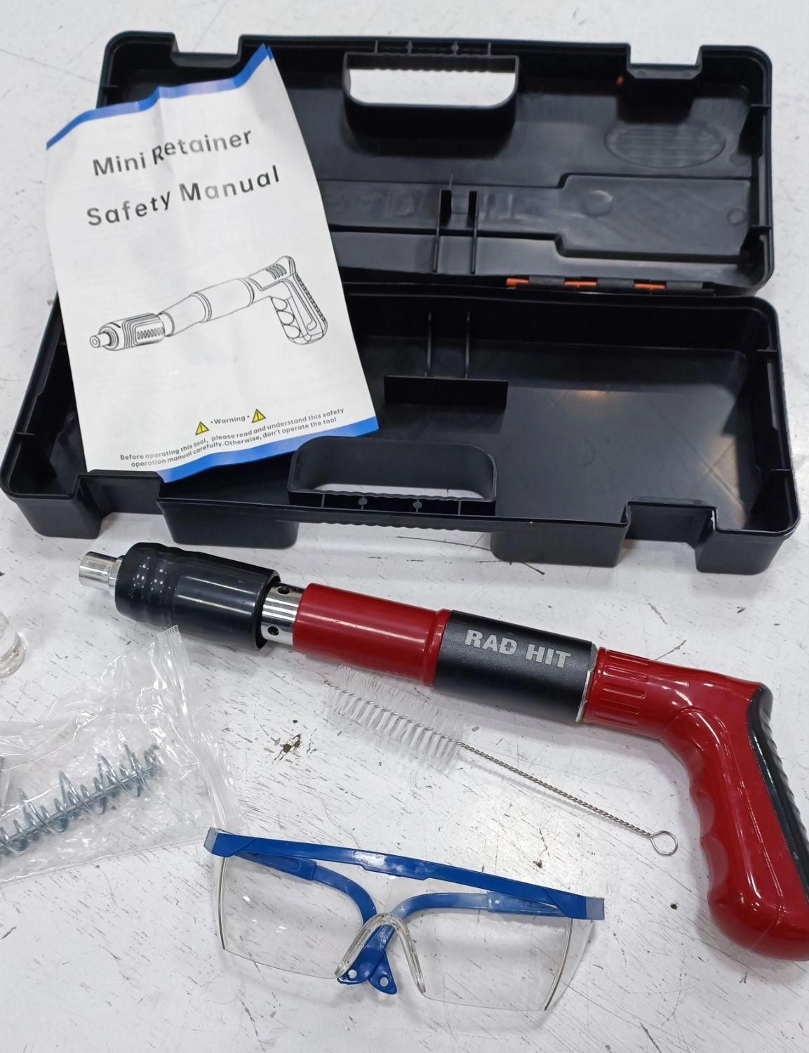 🔧 معرفی محصول: تفنگ میخکوب RAD HIT یک ابزار حرفهای و قدرتمند است که برای نصب میخها روی سطوح مختلف طراحی شده است. این محصول با طراحی ارگونومیک و کیفیت ساخت بالا، انتخابی ایدهآل برای پروژههای ساختمانی، صنعتی و خانگی است. همراه این تفنگ میخکوب، مجموعهای از متعلقات شامل عینک ایمنی، برس تمیزکاری، بسته میخ و دفترچه راهنمای ایمنی ارائه میشود.