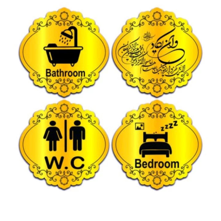 بسته چهارتایی تابلو نشانگر در حمام دستشویی، اتاق خواب و آویز وان یکاد، مولتی استایل، دو رنگ طلایی و نقره ای، سایز 15