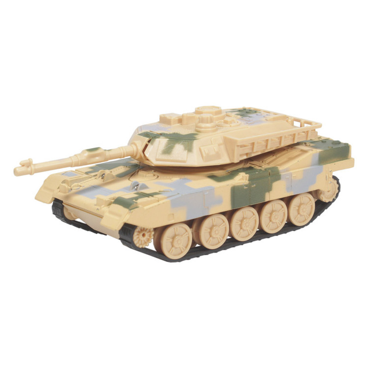 دارای بدنه ی فلزی و زیره ی پلاستیکی دارای صدا و چراغ (با چرخاندن کلاهک تانک) دارای سیستم عقبکش دارای شنی های تزئینی (دارای 4 عدد چرخ)