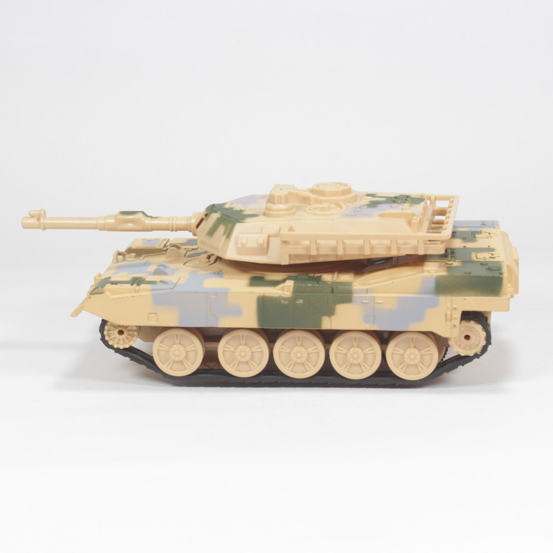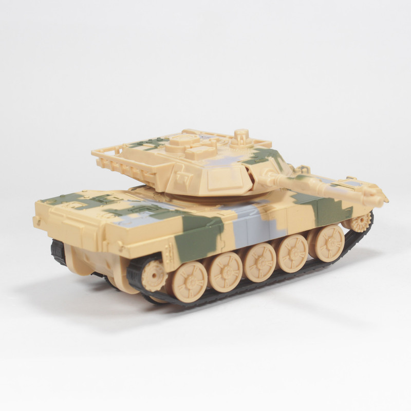دارای بدنه ی فلزی و زیره ی پلاستیکی دارای صدا و چراغ (با چرخاندن کلاهک تانک) دارای سیستم عقبکش دارای شنی های تزئینی (دارای 4 عدد چرخ)
