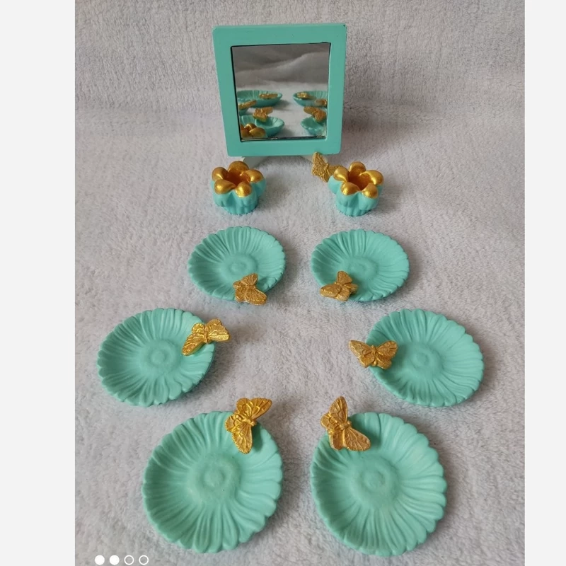 سرویس هفت سین رنگ شده گل داوودی ، ست هفت سین سنگی ، هفت سین داوودی ، سفره هفت سین رنگی، هفتسین گل آفتابگردان فیروزه ای