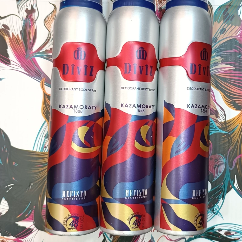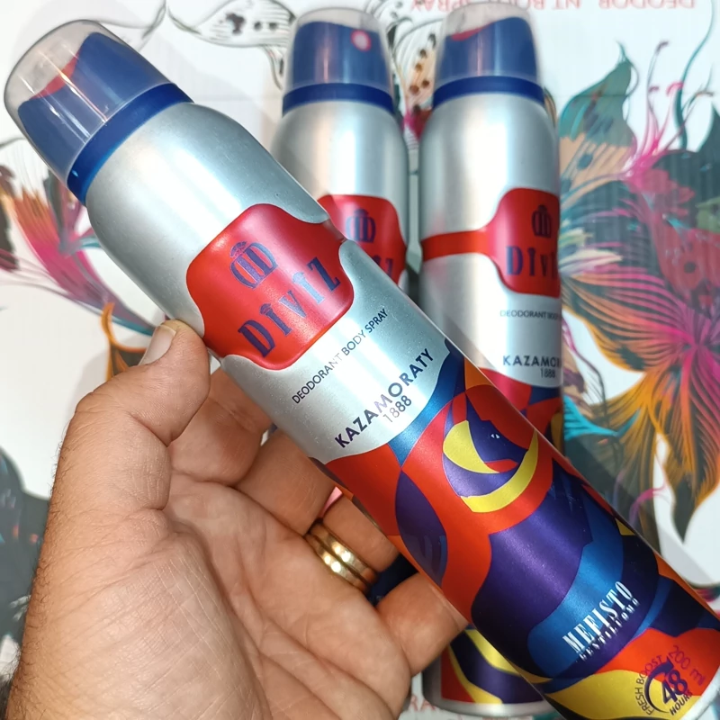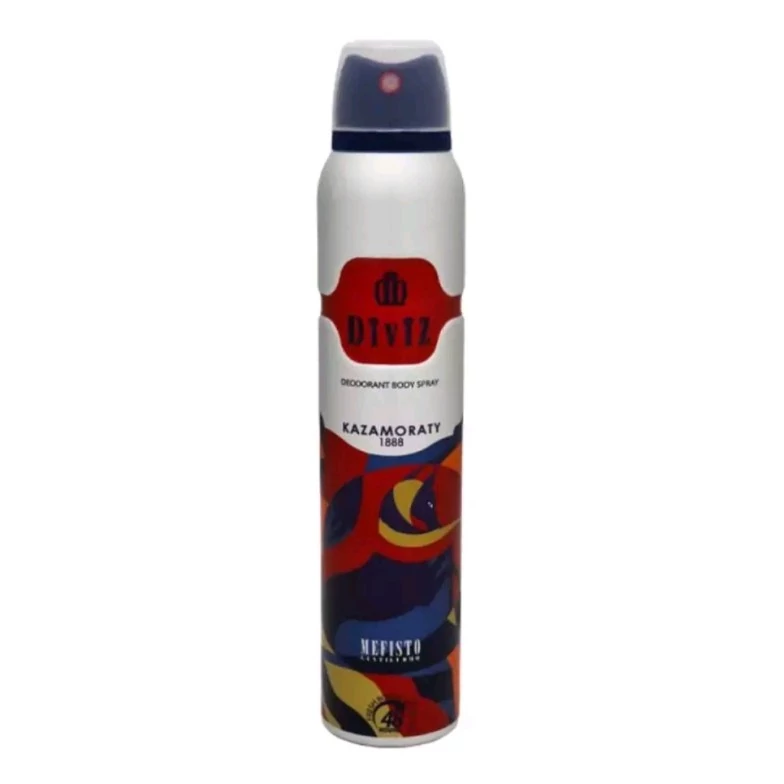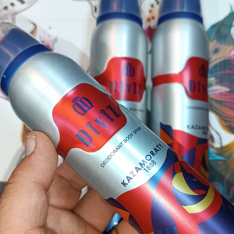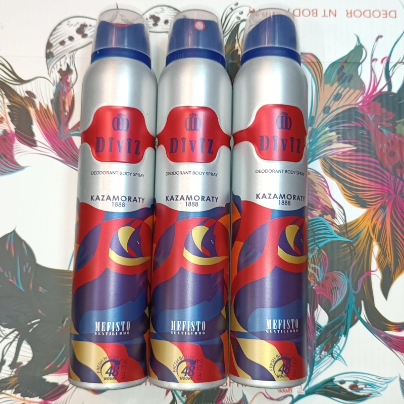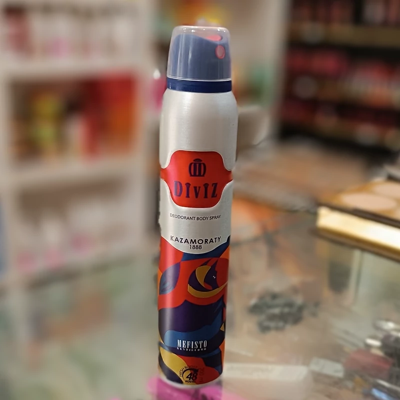 اسپری بدن کازاموراتی شرکت دیوایز 200 میل Diviz kazamoraty اسپری کازاموراتی رایحه خوشبو کاساموراتی عطر جذاب مردانه diviz