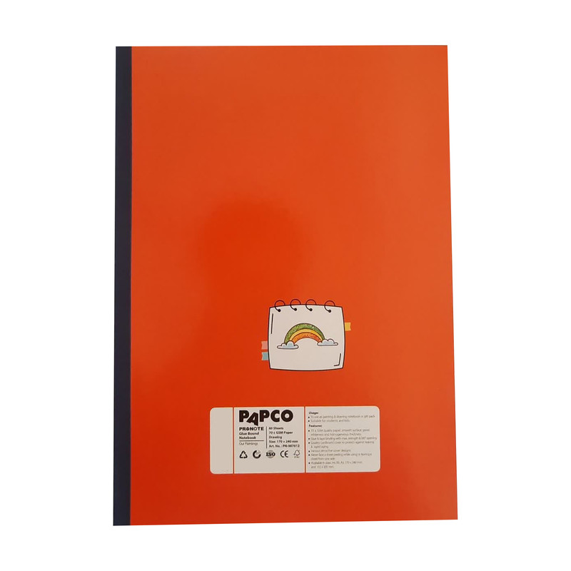 دفتر پرونت نقاشی 60 برگ کد PN – 9076، دفتر نقاشی پاپکو از سری تولیدات پرونوت است که با تکنولوژی منحصر به فرد و روز دنیا تولید شده است. این دفتر محصولی ایده آل برای نقاشی کودکان و خردسالان و به واسطه طرح های خاص و متفاوتش حتی طراحی دانشجویان نیز قابل استفاده است. برگه های این دفتر از کاغذی با بافت یکنواخت و تراکم بالا تولید شده و به شما امکان نقاشی و طراحی در سطحی روان را می دهد. همچنین صحافی چسبی آن برای اولین بار در ایران توسط دستگاه های تمام اتوماتیک و به صورت برگه به برگه انجام شده که به سبب آن، کندن برگه از هر جای دفتر به راحتی و بدون جدا و یا پاره شدن سایر برگه ها انجام می شود و این خود یک ویژگی بی نظیر برای دفاتر نقاشی است که معمولا برگه های بسیاری از آن کنده و جدا می شود. این نوع خاص از صحافی و پارچه ای که در عطف آن چسبانده شده، کمک می کند تا دفتر کاملا باز شود و هنگام نوشتن علاوه بر آن که می توان از ابتدای صفحه نقاشی کرد، فضای کافی برای گردش دست و ترسیم راحت وجود داشته و از تمام فضای کاغذ استفاده کرد. در صفحه ابتدایی این دفتر ویژگی ها و توضیحات محصولات پرونت به صورت تصویری آمده و صفحه بعد نیز به یک جدول برنامه ریزی ماهانه اختصاص داده شده است. وزن این دفتر بسیار کمتر از سایر محصولات مشابه بوده و این خود یکی از دیگر مزایای این دفتر برای انتخاب به عنوان یک دفتر نقاشی همیشگی است.