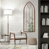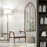 آینه نیم قد الف مدل پروانه از کیفیت و ظرافت منحصر به فردی برخوردار است. این محصول ساخته شده از ورق وارداتی MDF و آینه نقره اندود درجه A می باشد. در پشت محصول یک ورق یک تکه MDF به کار برده شده که در حفظ سلامت آینه نقش به سزایی ایفا می کند. برای استفاده از آن باید به صورت ایستاده به دیوار تکیه بدهید یا در ورق پشت حفره های مثلثی شکل طراحی شده که می توان آن را به صورت تک میخ (یا پیچ) یا دو میخ به صورت افقی نصب نمود. طول این محصول 88cm و عرض آن 39cm می باشد. از آن می توان برای دکوراسیون داخلی منزل یا محل کار، دیوارهای پشت مبل، میز کنسول، جاکفشی و... استفاده نمود. طرح چوب روی آینه با ظرافت خاصی برش خورده که به هیچ عنوان وسعت و دید آینه را نمیگیرد.