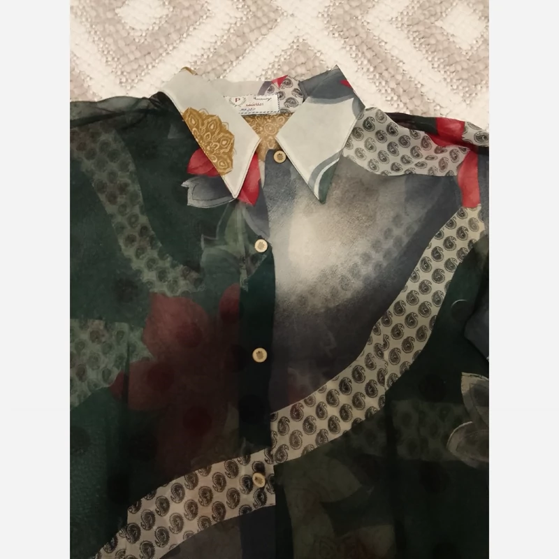 شومیز لباس آستین بلند حریر اماراتی سبز کرم قرمز مشکی گلدار گل گلی بته جقه فری سایز زنانه دخترانه