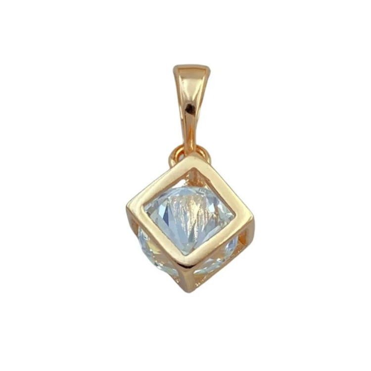 آویز گردنبند زنانه ژوپینگ مدل تک نگین مکعب کد 4پلاک ژوپینگ رنگ ثابت بدون حساسیت ابکاری طلا