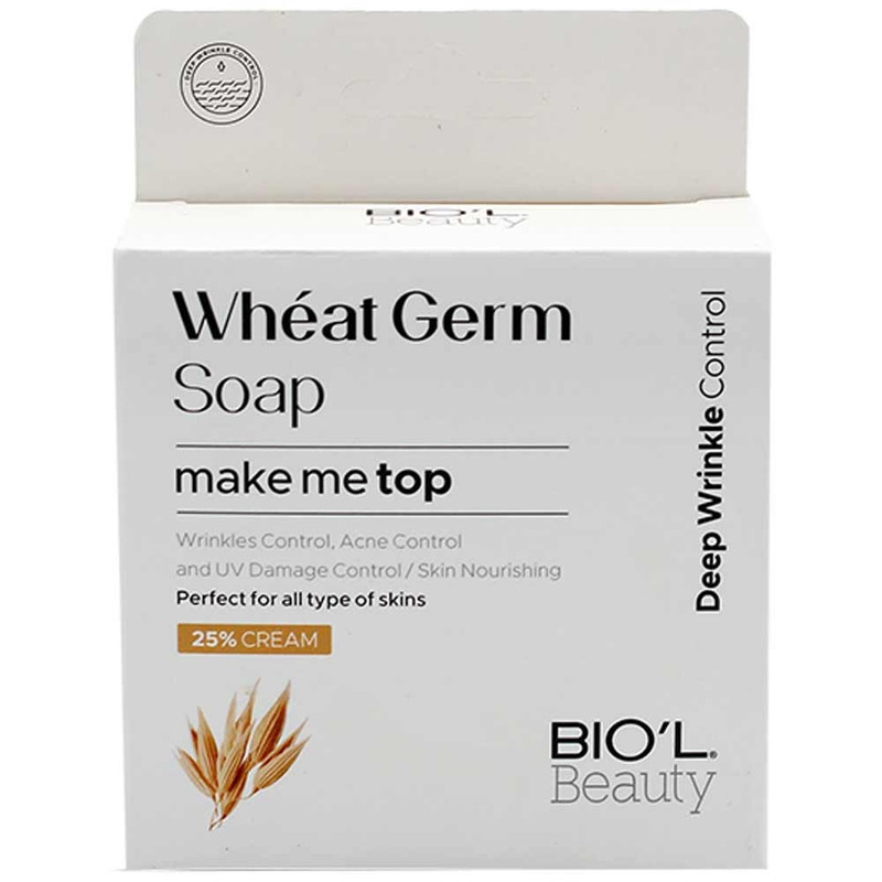 صابون کرمی پاک کننده پوست صورت، کمک به رفع چین و چروک و ترمیم کننده، با عصاره جوانه گندم، حاوی 25% کرم: جوانه گندم ، گیاه کاملاً همخوان با بافت پوست که خواص منحصر بفردی را در تغذیه ویتامینه پوست ، کنترل و ترمیم چروک ، جلوگیری از آسیب های اشعه مضر UV ، التیام جوش و رفع لک پوستی ایفا می نماید و خاصیت کنترل جوش و آکنه را همراه با طراوت بخشی به پوست به شما هدیه می دهد. جوانه گندم انرژی بخش بسیار قوی به بافت پوست می باشد و مانع از خشکی پوست پس از شستشو می گردد و عملاً علیرغم قدرت پاک کنندگی عمیق این صابون، نرم کنندگی فوق العاده بالایی برروی پوست مشاهده خواهد شد.