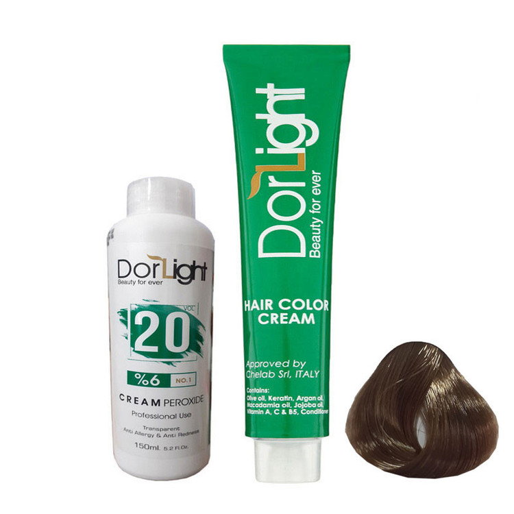 رنگ مو دور لایت شماره 7.3 حجم 100 میلی لیتر رنگ بلوند زیتونی به همراه اکسیدان کد 01 شش درصدی حجم 150 میلی لیتر