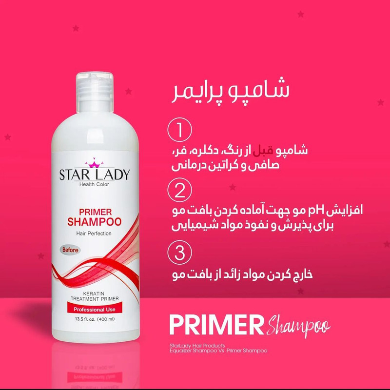 شامپو پرایمر مناسب برای قبل کراتین میباشد مناسب برای قبل از - کراتین درمانی و فر و صاف نمودن و رنگ آمیزی و دکره این شامپو بافت مو را برای پذیرش مواد مورد استفاده میکند.