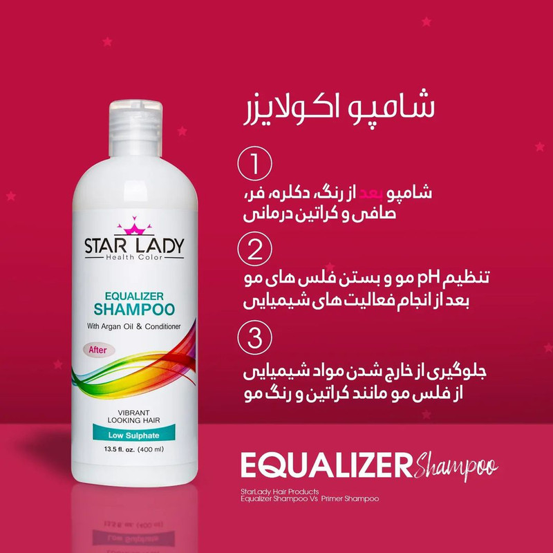 شامپو اکولایزر مناسب برای بعد از کراتین میباشد.مناسب برای بعد از - کراتین درمانی و فر و صاف نمودن و رنگ آمیزی و دکره این شامپو تمام مواد مخرب شیمیایی را از مو خارج میکند.