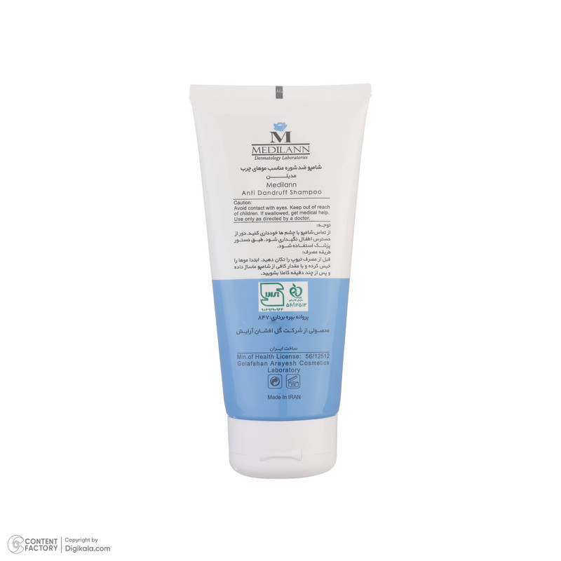 شامپو ضدشوره مدیلن مخصوص موهای چرب در پیشگیری و درمان شوره سر مناسب بوده و جهت پیشگیری و درمان ریزش موی مردانه (طاسی مردانه)، درمان قارچ های بدن مانند Tinea Versicolor به کار میرود. این شامپو ضدشوره حاوی زینک پریتیون 2% نرم کننده و ضداستاتیک است.
