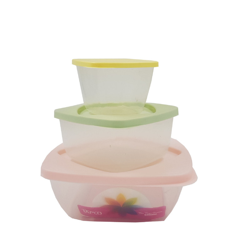 اگر برای همراه داشتن انواع غذاها یا خوراکی های مختلف در خانه، محل کار یا حتی سفر به دنبال ظروفی با کیفیت و کاربردی هستید، ست سه عددی تاپکو مدل فلورا کد 1384 گزینه ای ایده آل برای شما محسوب می شود. این محصول شامل سه عدد ظرف نگهدارنده با ابعاد متنوع بوده و برای نگهداری غذا به صورت سرد و گرم کاربردی است. این ست از مواد اولیه استاندارد با گرید مواد غذایی ساخته شده و فاقد ماده مضر بیسفنول آ (BPA) است. در پوش ظروف از هر طرف محکم و بسته میشود و اجازه نمی دهد بوی سایر مواد غذایی داخل یخچال به غذای شما نفوذ کند. این ظروف را می توانید علاوه بر شستن با دست، با خیال راحت در ماشین ظرفشویی قرار دهید.