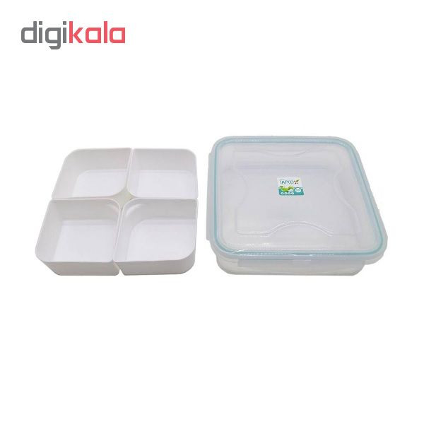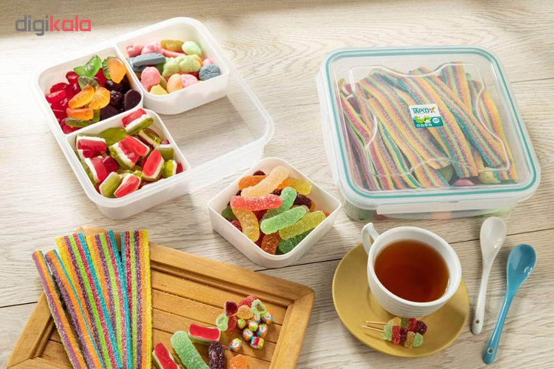 اگر برای همراه داشتن انواع غذاها یا خوراکی های مختلف در خانه، محل کار یا حتی سفر به دنبال ظروفی با کیفیت و کاربردی هستید، ظرف تک عددی تاپکو مدل 430 پلاس گزینه ای ایده آل برای شما محسوب می شود. این محصول از ظرف های نگهدارنده مربعی شکل به ابعاد 20*20*5 سانتیمتر و برای نگهداری غذا به صورت سرد و گرم کاربردی است. این ظرف از مواد اولیه استاندارد با گرید مواد غذایی ساخته شده و فاقد ماده مضر بیسفنول آ (BPA) است. حتی اگر بخواهید غذای خود را گرم کنید، میتوانید این ظرف را در ماکروویو قرار دهید. این ظرف قابل استفاده در بازه ی دمایی 40- تا 100+ درجه سانتی گراد است. درپوش ظرف از هر چهار طرف با گیره ی کلیپسی بسته و محکم می شود و اجازه نمی دهد بوی سایر مواد غذایی داخل یخچال به غذای شما نفوذ کند. این ظروف را می توانید علاوه بر شستن با دست، با خیال راحت در ماشین ظرفشویی قرار دهید.