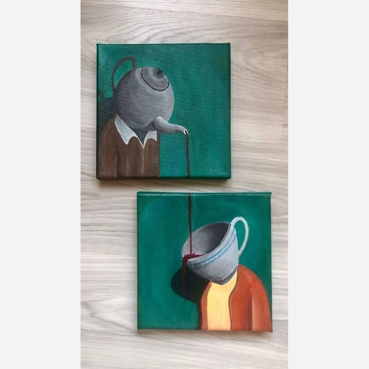 بوم مینیمال اکرولیک رنگ روغن اندازه 20در20 تابلو نقاشی