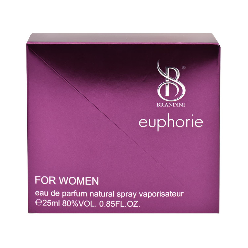 این عطر برندینی برگرفته از عطر euphoria calvin klein می باشد نت های بکار رفته در این عطر عبارتند از : نت آغازین : انار نت میانی : کنار , ارکید نت پایه : مشک , بنفشه , عنبر , ماهون