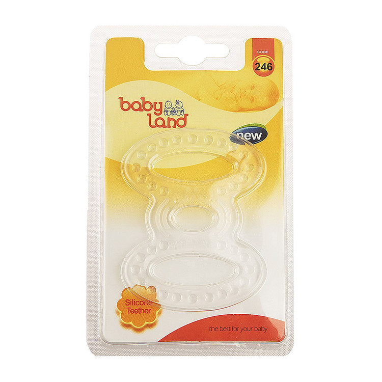 محصولی که میبینیم یک دندانگیر ساده از برند «بیبیلند» است. وزن سبک، ابعاد کوچک و جنس سیلیکونی نرم، از جمله امتیازات این کار به شمار میآیند. دندانگیر از جمله لوازم نوزادی است که در حین رشد و درآوردن دندان نوزاد، جهت تسکین درد و تعادل فشار لثه در مدت زمان رشد دندانها کارایی دارد.