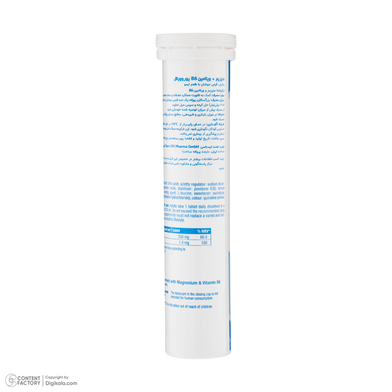 قرص جوشان منیزیم و ویتامین B6 با طعم لیمو