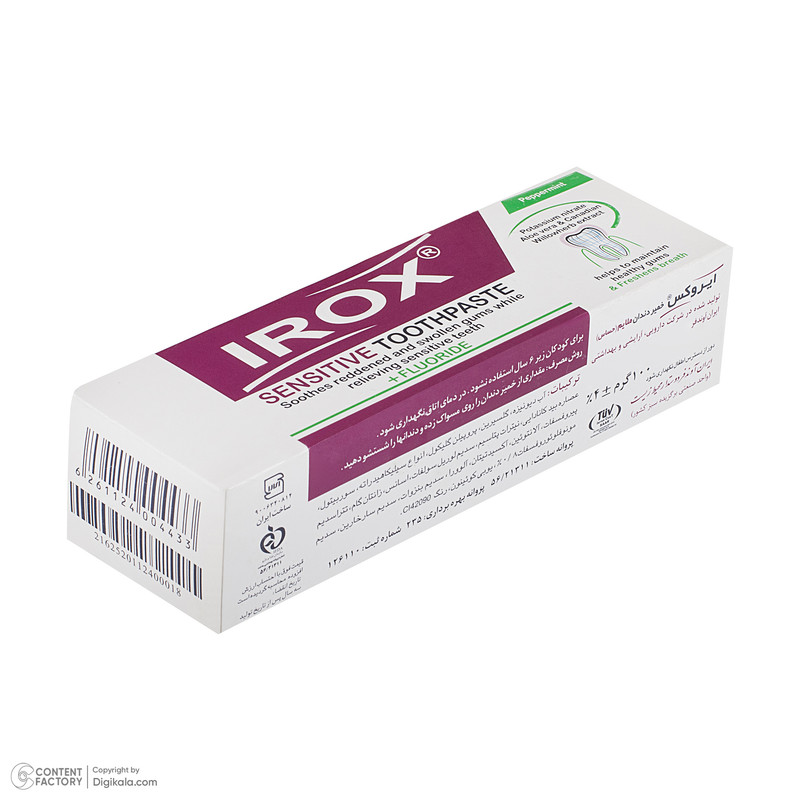 خمیردندان ملایم ایروکس از بین برنده تحریک و قرمزی و تورم لثه میباشد و همراه با ایجاد حس تسکین و آرامش برای دندانهای حساس فرموله شده است. خمیردندان ملایم ایروکس با ترکیبات ویژه و فلوراید از پوسیدگی دندانها جلوگیری کرده و حاوی منتول در ترکیب خود میباشد که محیط دهان را مطبوع کرده و برای مدت طولانی آن را خنک نگه میدارد. خمیردندان ملایم ایروکس با طعم ملایم نعناع به خوشبو شدن دهان کمک کرده و با پاک کنندگی کامل پلاکهای مضر روی دندانها را از بین میبرد.