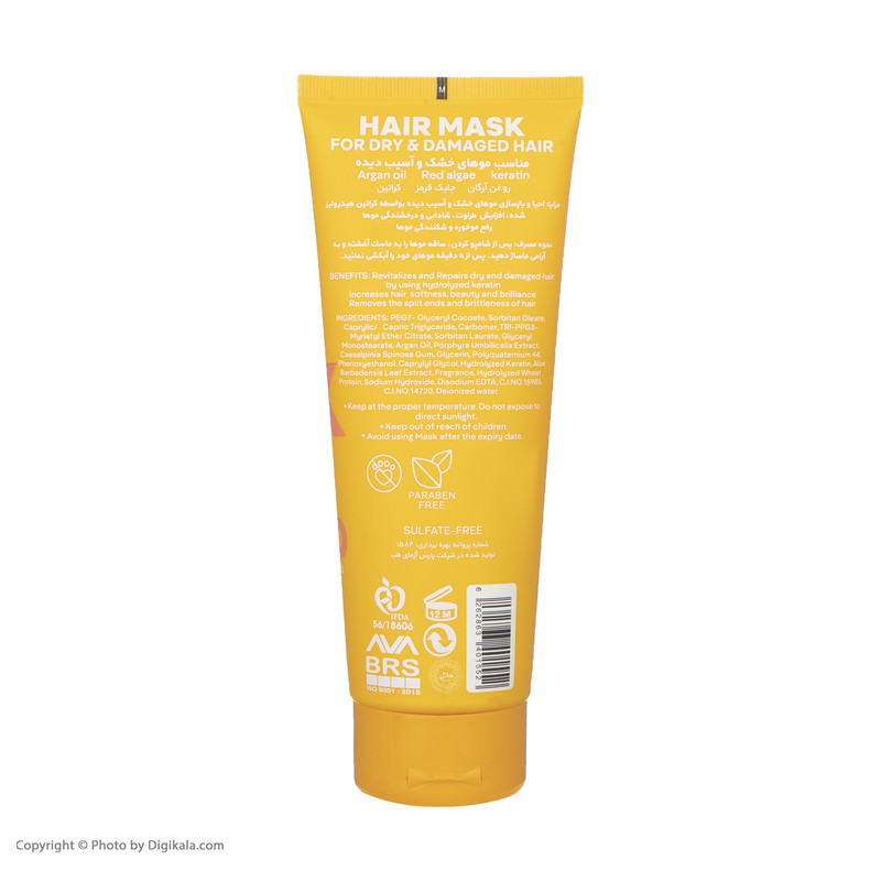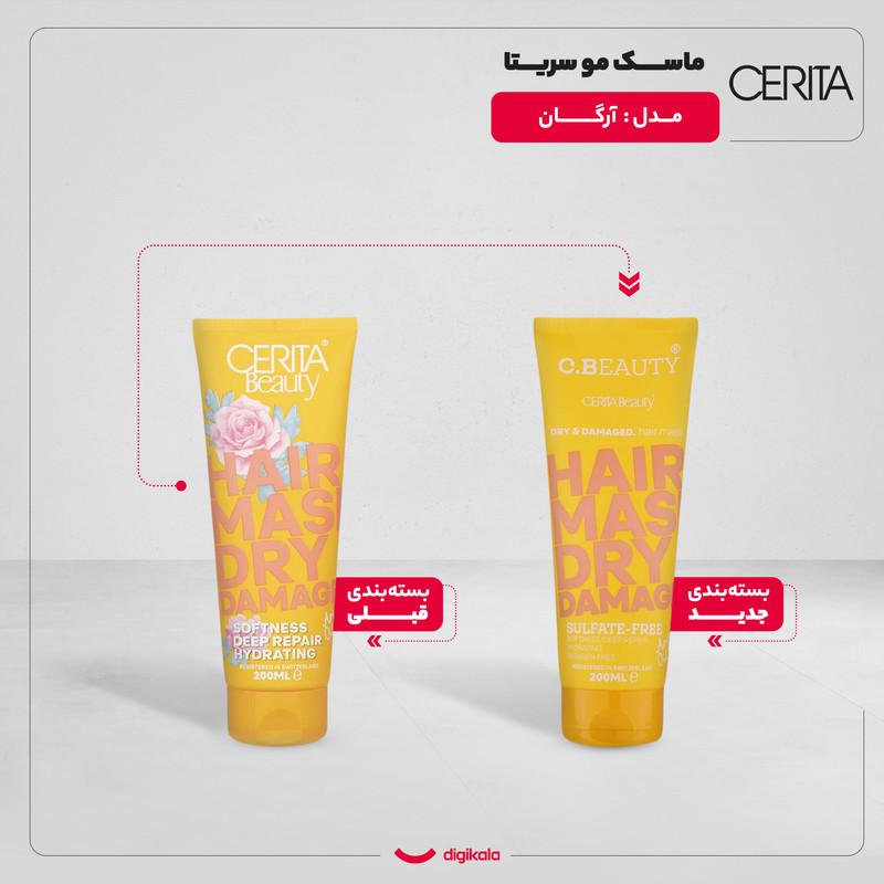 ماسک مو سریتا مناسب برای مو های خشک و آسیب دیده حاوی روغن آرگان و جلبک قرمز و کراتین می باشد.