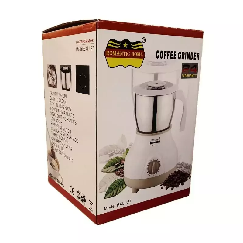 آسیاب رومانتیک هوم مدل BALI-27 داراي قدرتمند مي باشد. تيغه هاي فلزي آن دو پره و محفظه آن از نوع استيل ضد زنگ مي باشد. داراي کابل با طول 100 سانتي متر است. اين وسيله کاربردي مناسب براي آسياب دانه هاي قهوه, هل, آجيل, ادويه ها, انواع سبزيجات خشک براي تهيه سوپ و… مي باشد. مي توان برنج را با اين دستگاه آسياب قهوه, آرد نمود و در تهيه فرني و دسر براي کودکان خود مورد استفاده قرار داد.مي توان براي تهيه پودر شکر که در تزيين نهايي شيريني و کيک مورد استفاده قرار مي گيرد را با اين آسياب قهوه به راحتي تهيه نمود. مي توان براي آسياب دانه هاي قهوه از اين وسيله کاربردي استفده نمود. به طور کلي کارهاي زيادي را با آسياب قهوه رومانتيک هوم مي توان انجام داد. داشتن يک دستگاه آسياب در آشپزخانه مي تواند خيلي از کارهاي به ظاهر دشوار را براي شما آسان نمايد. همچنين با توجه به ابعاد آن متوجه خواهيد شد که جاي زيادي را نيز در آشپزخانه اشغال نخواهد کرد.