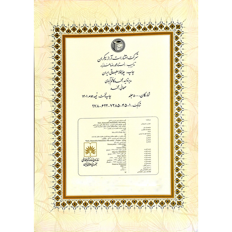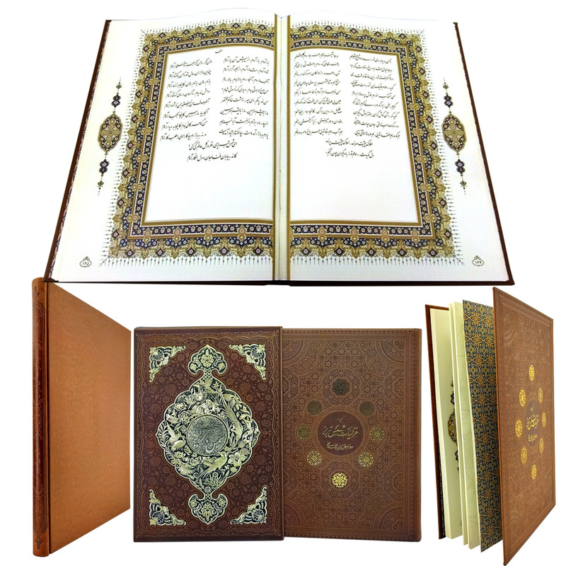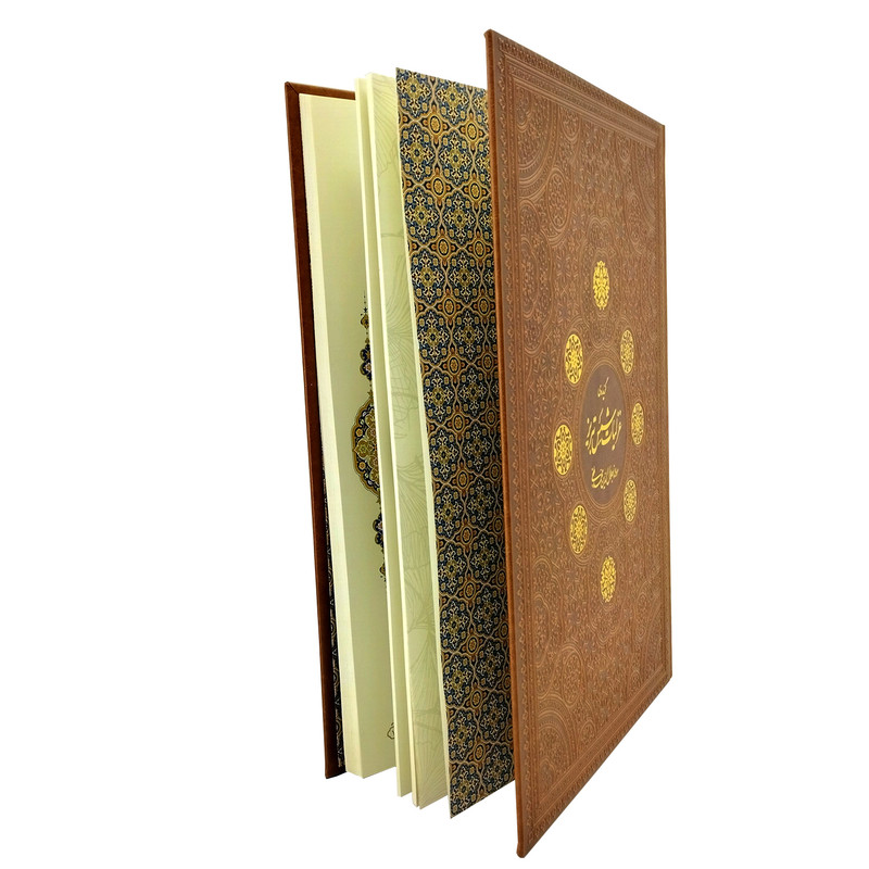 این محصول زیبا و نفیس غزلیات شمس از نوع رحلی می باشد , که نوع جلد آن چرم مصنوعی قابدار طرح مس با طراحی بسیار شیک , نوع کاغذ این کتاب نفیس از جنس گلاسه با کیفیت خوبی است . این کتاب زیبا شامل 544 صفحه است