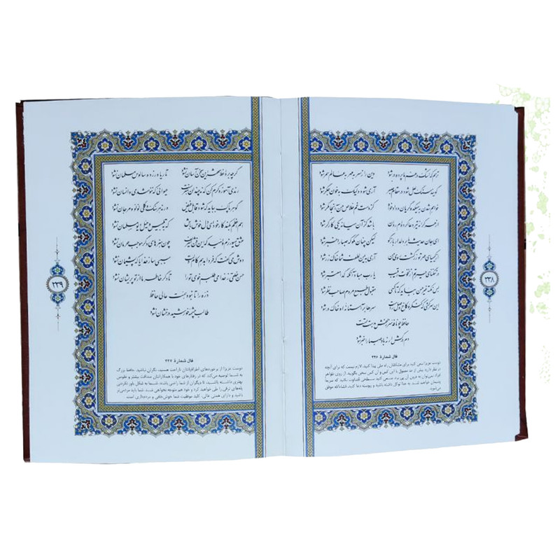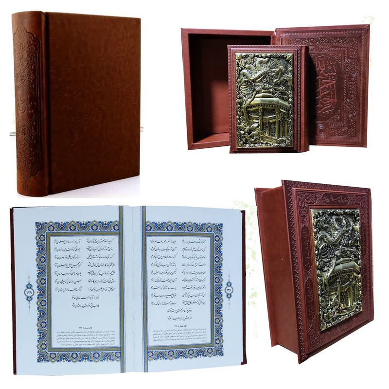 این محصول زیبا و نفیس دیوان حافظ از نوع جیبی می باشد , که نوع جلد آن چرم مصنوعی جعبه دار طرح مس مقبره با طراحی بسیار شیک , نوع کاغذ این کتاب نفیس از جنس گلاسه با کیفیت خوبی است . این کتاب زیبا شامل 560 صفحه با ابعاد (13 در 17) و ست کامل این محصول با ابعاد (17.5 در 20.5) با وزنی معادل 1510 گرم می باشد.