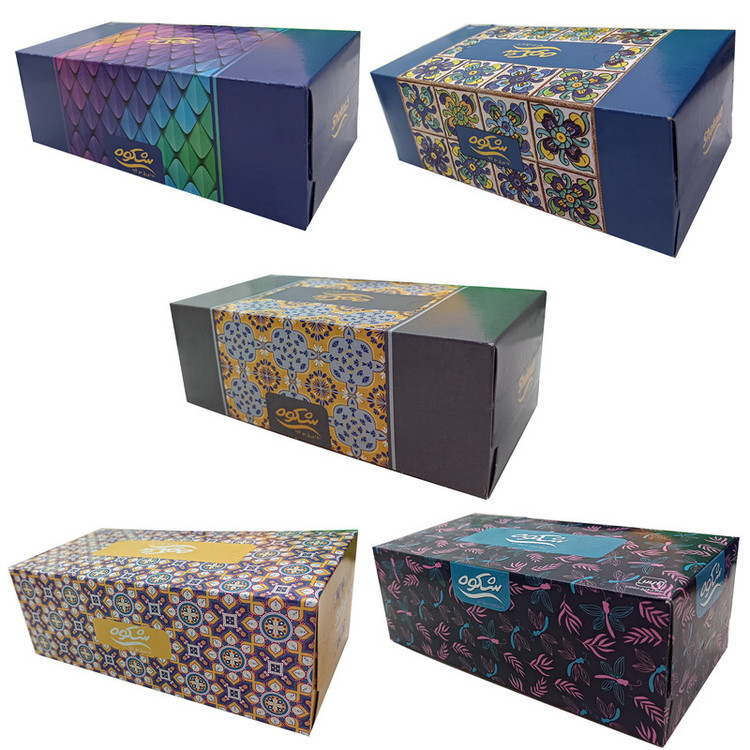 این پک شامل پنج بسته دستمال 150 برگه دو لایه ( 1500 برگ یک لایه) می باشد. کیفیت درجه یک طرح ساده 100 درصد تیشو(با الیاف خارجی)