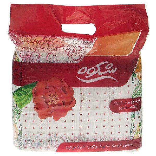 کیفیت درجه 1 طرح گلدار این پک شامل 8 بسته دستمال 150 برگه دو لایه ( 1200 برگ دولایه) می باشد.
