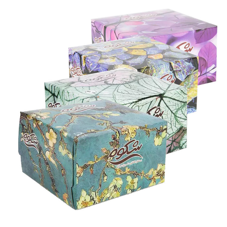 این پک شامل چهار بسته دستمال 50 برگه دو لایه ( 400 برگ یک لایه) می باشد. کیفیت درجه یک طرح ساده 100 درصد تیشو طبیعی (با الیاف خارجی)