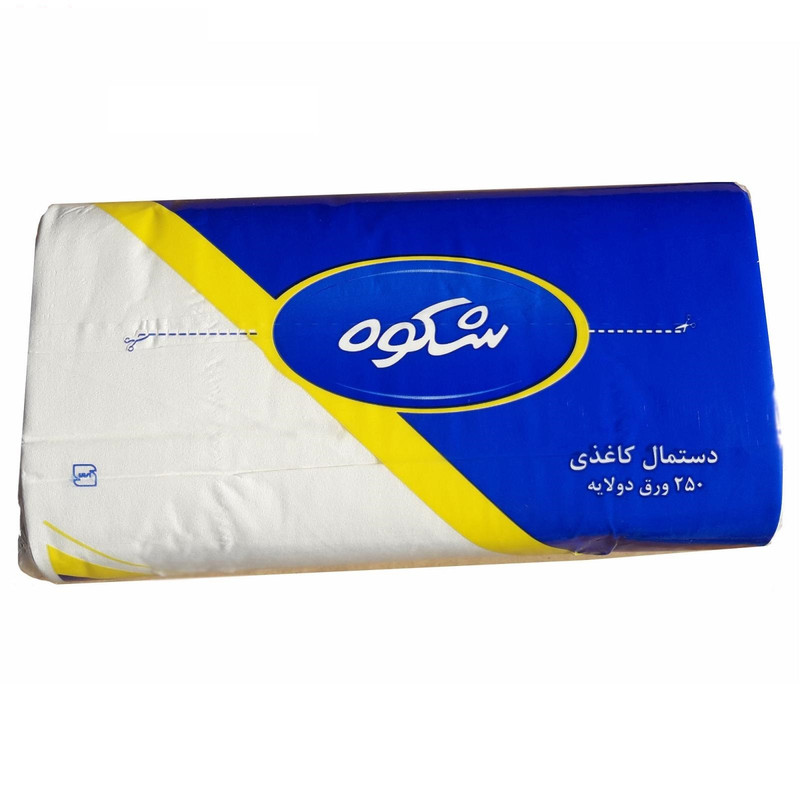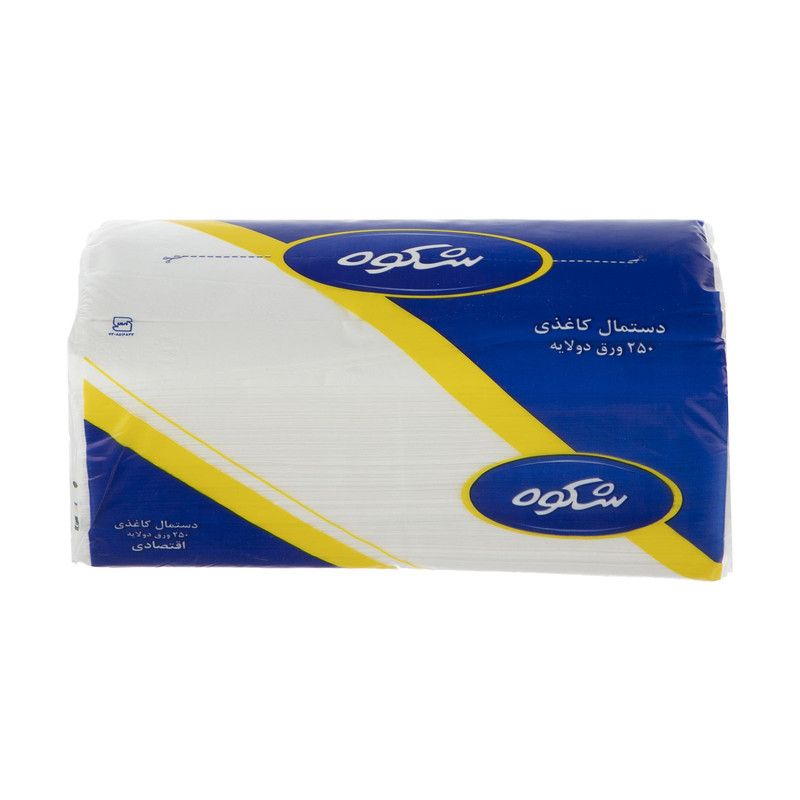 دستمال کاغذی یکی از پر مصرف ترین کالای هر خانواده میباشد.برای خرید یک دستمال باید معیار های زیادی را در نظر بگیریم.زیرا بی کیفیت بودن دستمال و محصولات سلولزی،موجب ایجاد حساسیت،ایجاد زخم و… میشود.یک دستمال کاملا استاندارد باید با کیفیت و بهداشتی بوده،تا مصرف کننده از این محصول کاملا راضی باشد و خرید از این برند را در لیست خرید خود داشته باشد.در همین راستای ما به شما دستمال کاغذی 250 برگ شکوه را معرفی میکنیم ، این محصول کاملا بهداشتی بوده و با استفاده از ماشین آلات تمام اتوماتیک در شرایط کاملا بهداشتی تولید شده است.دستمال کاغذی اقتصادی یا دستمال کاغذی مشمایی خیلی با صرفه برای مصارف بالا برای شرکت ها رستوران ها تالارپذیرایی درمانگاه ها بیمارستان ها دندانپزشکی ها قابل استفاده است.
